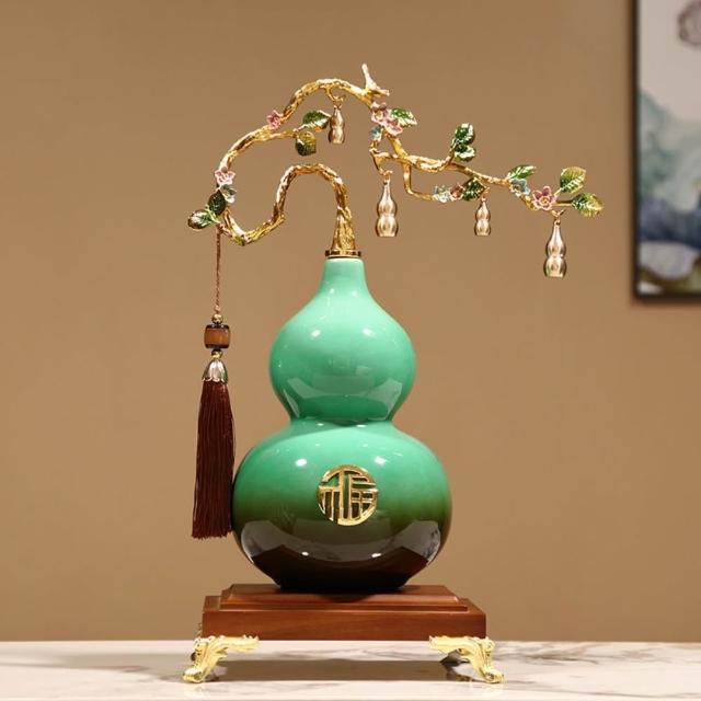 五福臨門陶瓷葫蘆擺件 客廳玄關酒櫃電視櫃裝飾品喬遷年會送人禮物