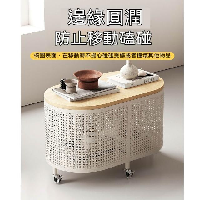 帶輪橢圓移動茶几 65*37*46CM 可移動小茶幾 置物架 可儲物 創意邊幾