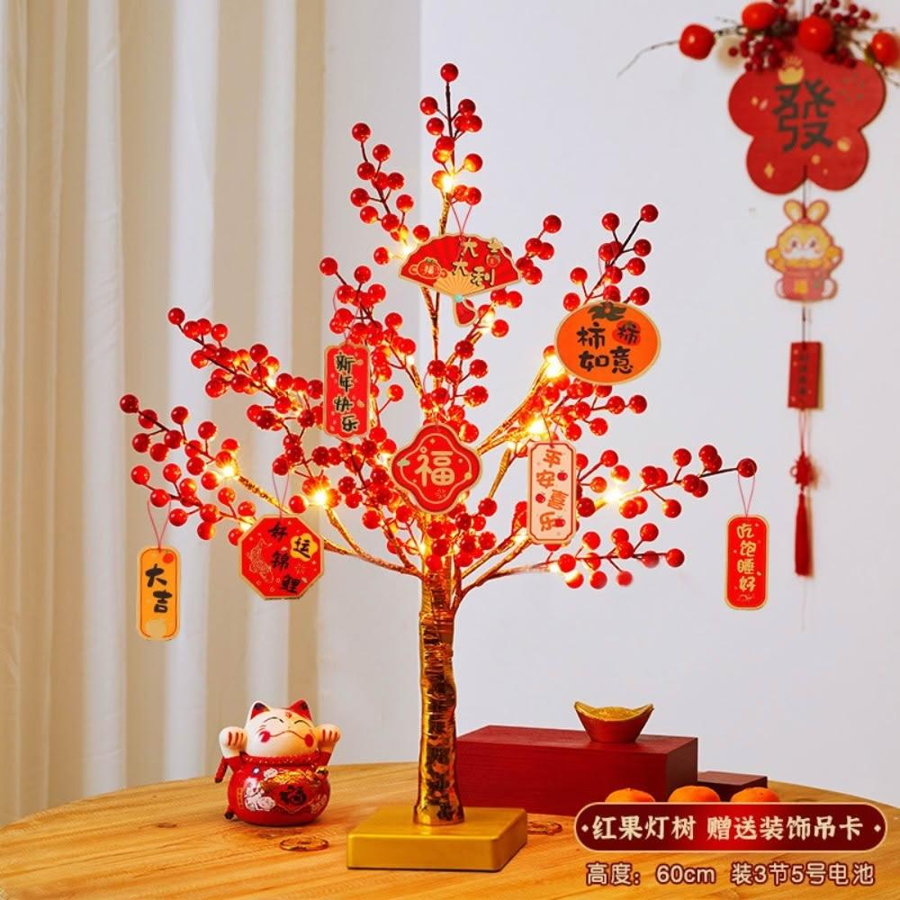 春節新年用品 紅果發光招財桃花燈樹 桌面擺件商場場景布置