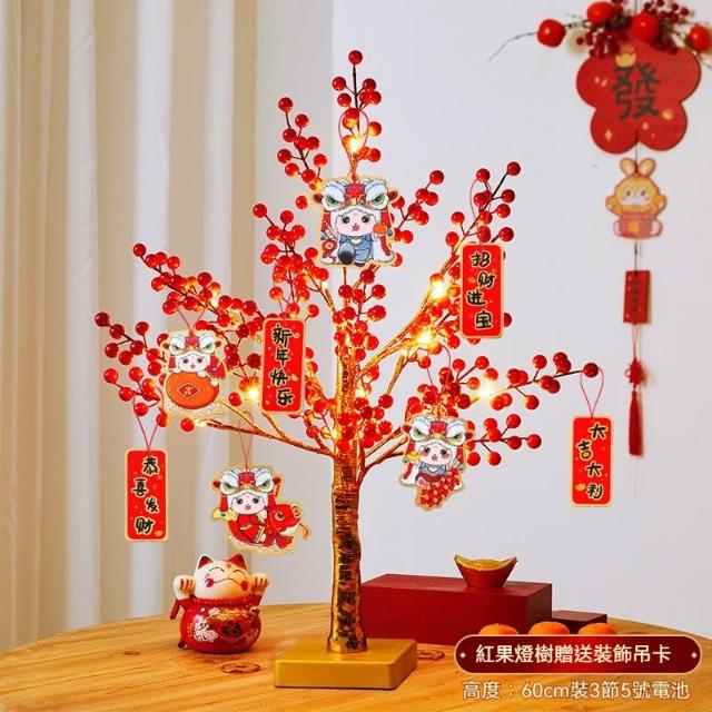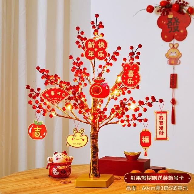 春節新年用品 紅果發光招財桃花燈樹 桌面擺件商場場景布置