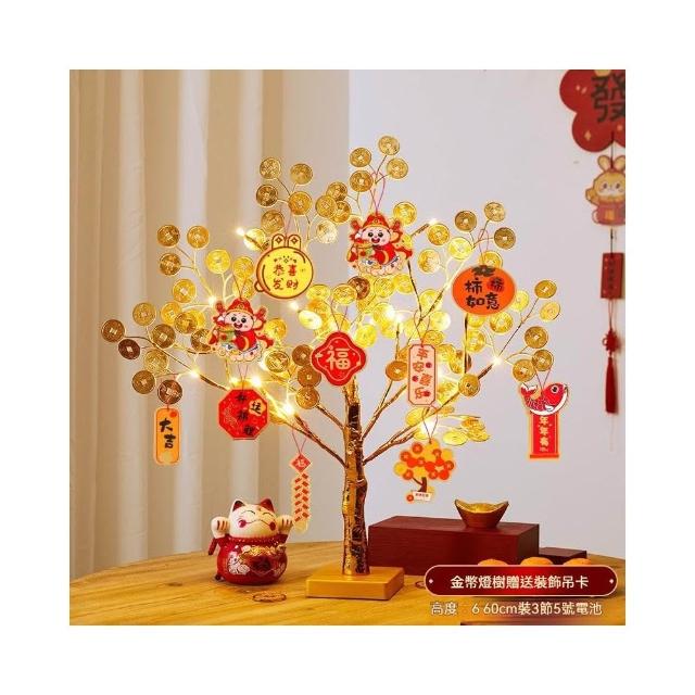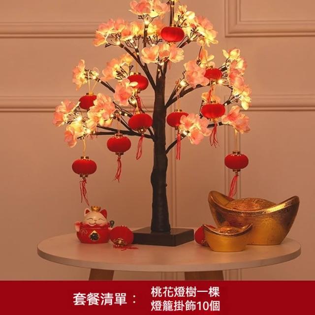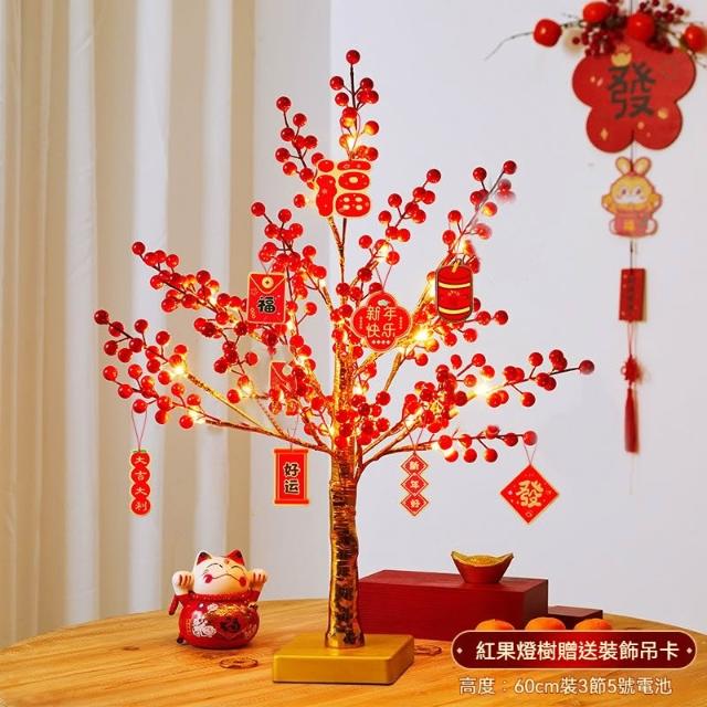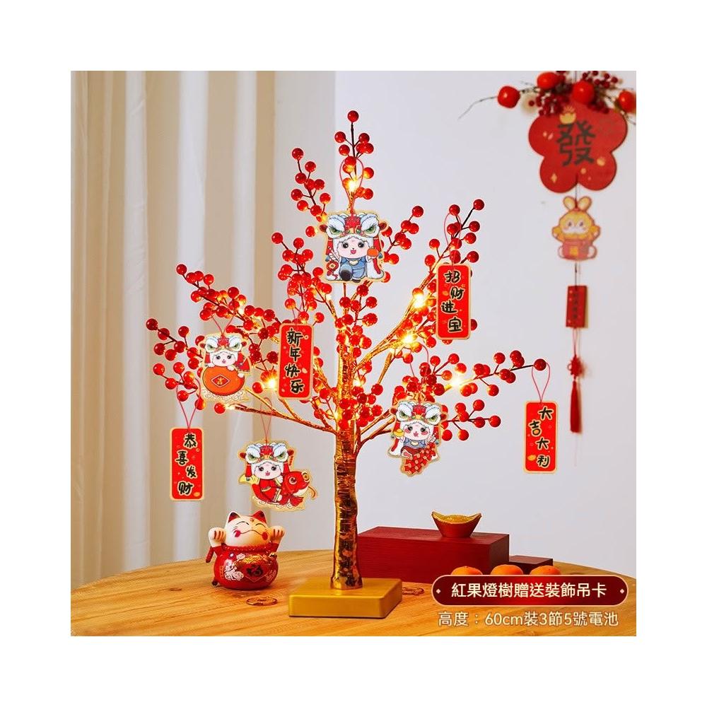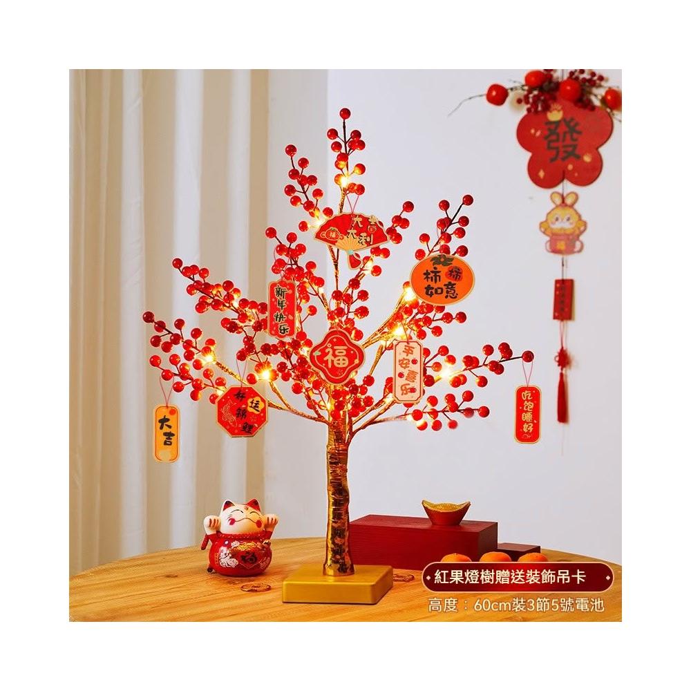 春節新年用品 紅果發光招財桃花燈樹 桌面擺件商場場景布置
