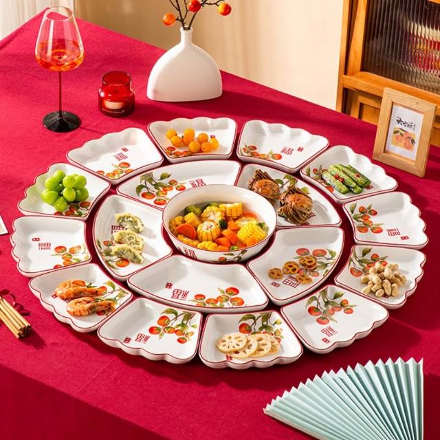 過年圍爐拼盤餐具套組 高溫陶瓷6件套 團圓餐盤 入厝禮家用易清洗