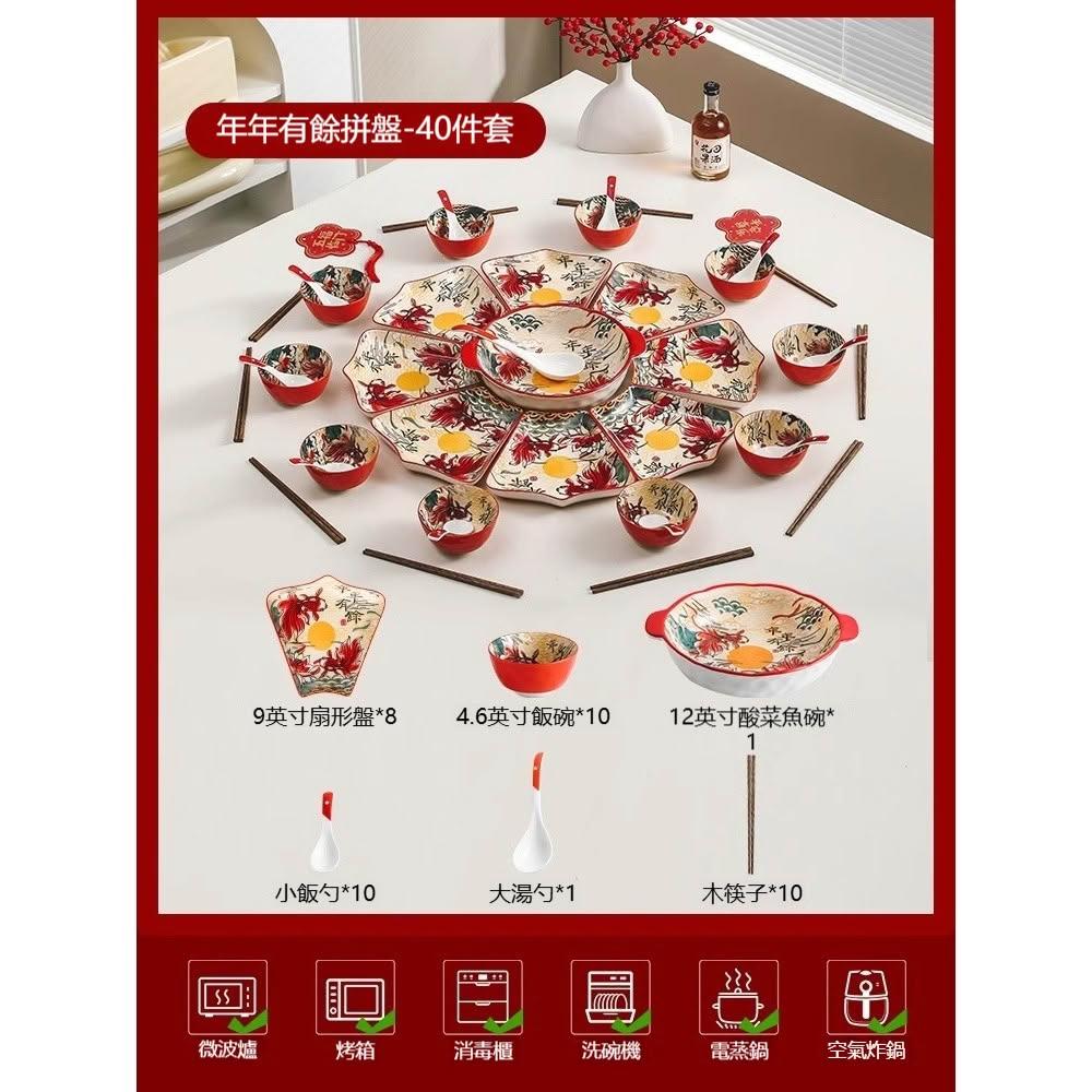 釉下彩團圓飯餐具 20*22cm 年夜飯拼盤套裝/家用圓桌盤子組合
