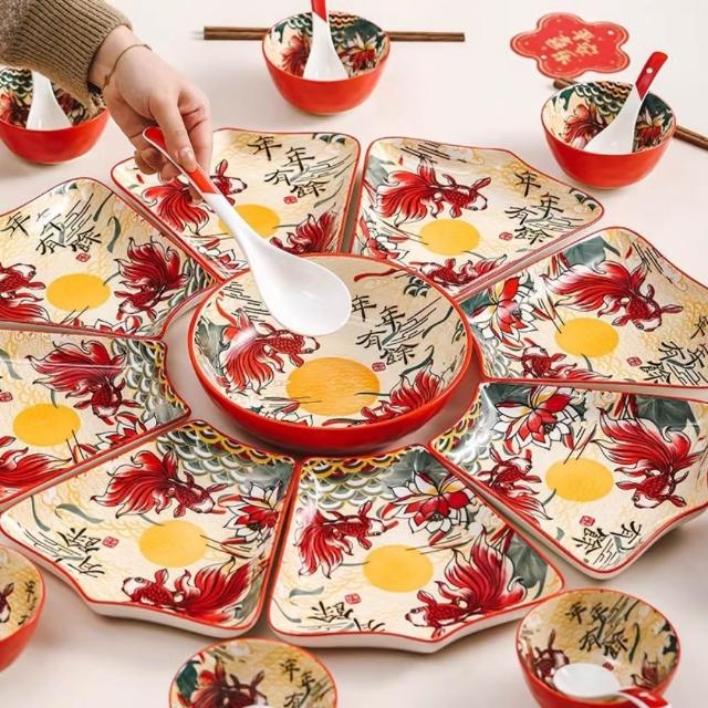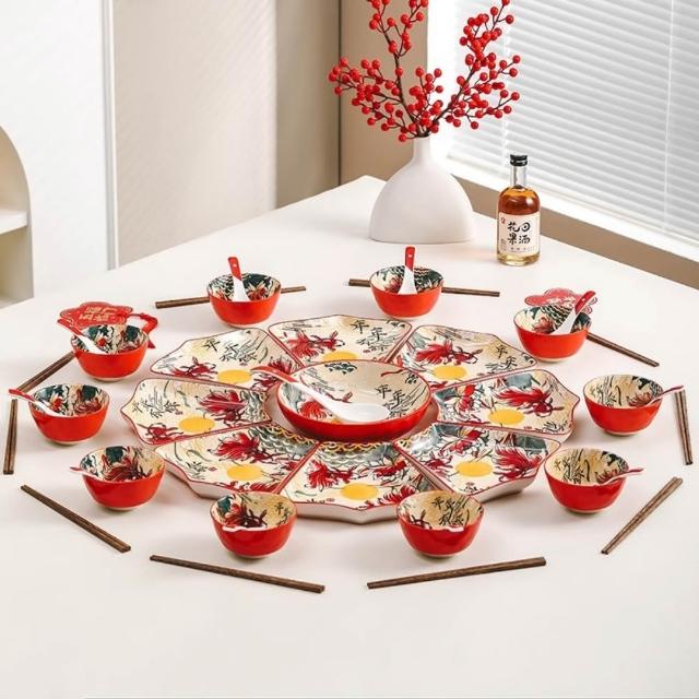 釉下彩團圓飯餐具 20*22cm 年夜飯拼盤套裝/家用圓桌盤子組合