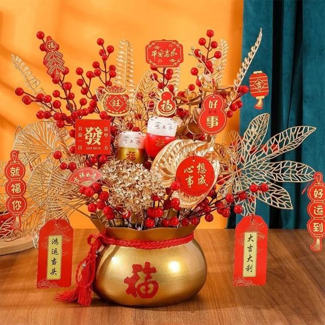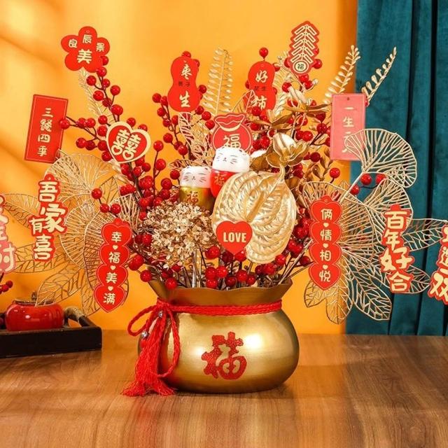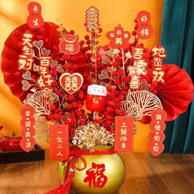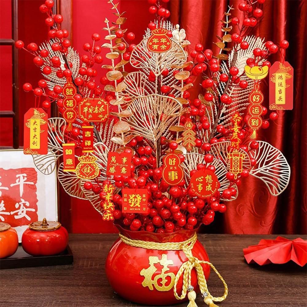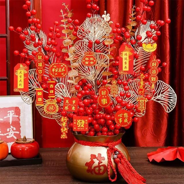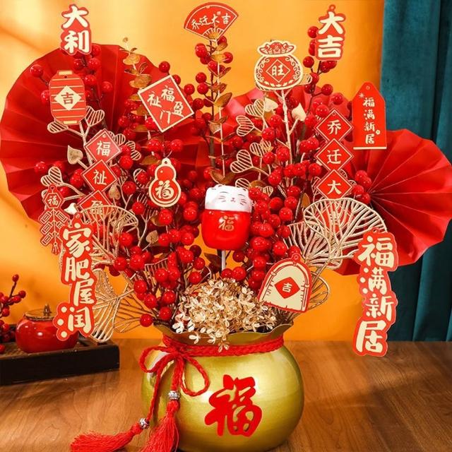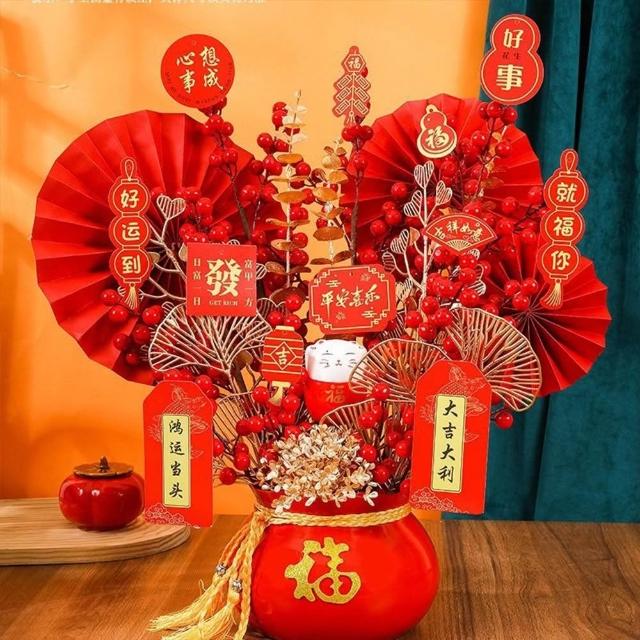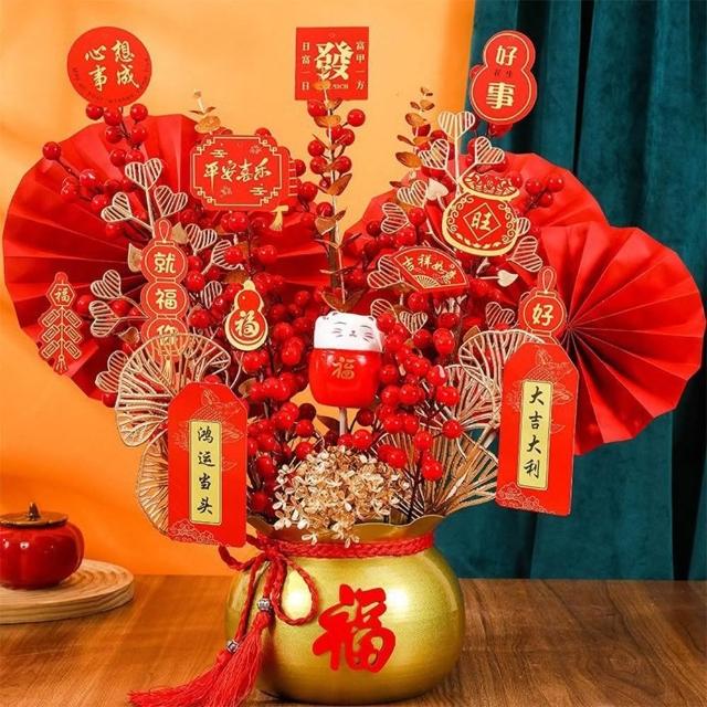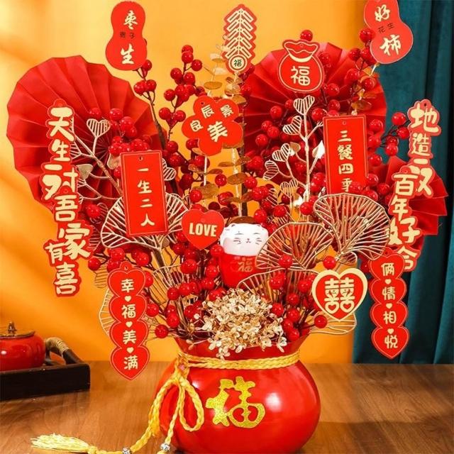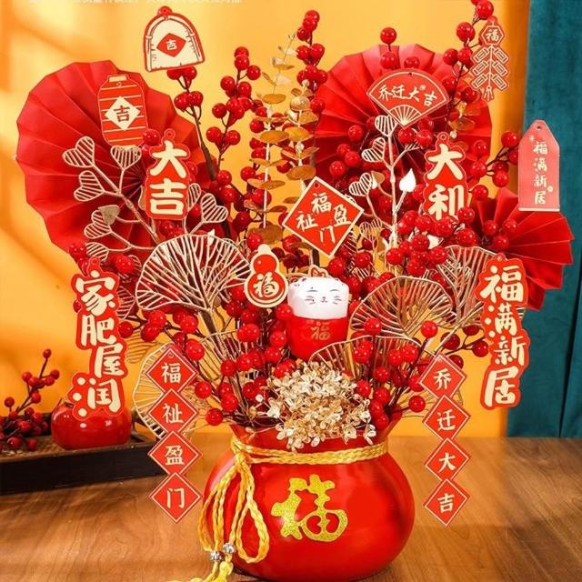 春節招財貓紅色裝飾 客廳年節討喜佈置 過年招財貓紅色裝飾