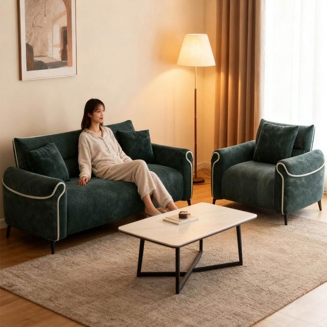 雪尼爾布藝沙發 150CM 大雙人沙發 實木框架+高回彈海綿+耐磨材質 小戶型沙發