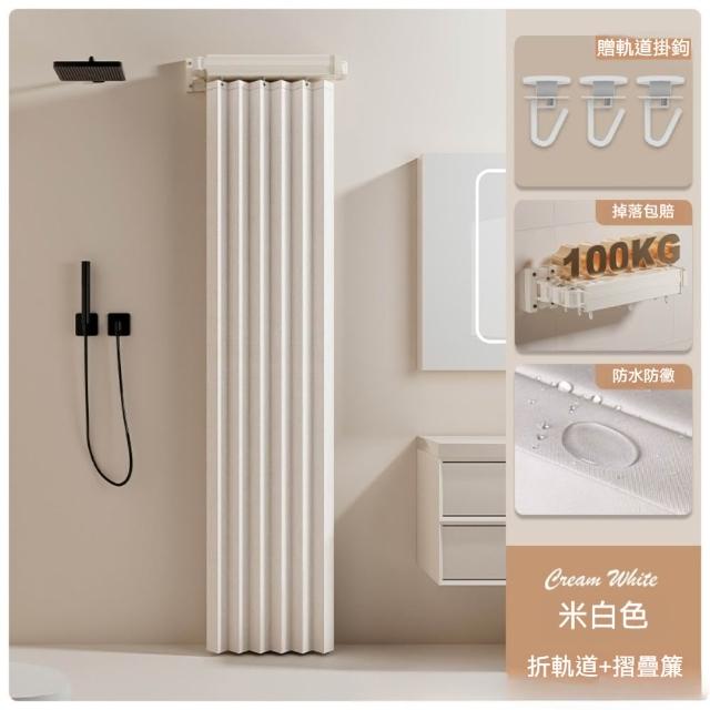 折疊浴簾 浴室隱形隔斷 家居衛生間防水簾 淋浴洗澡間幹濕分離 黏膠/打孔安裝