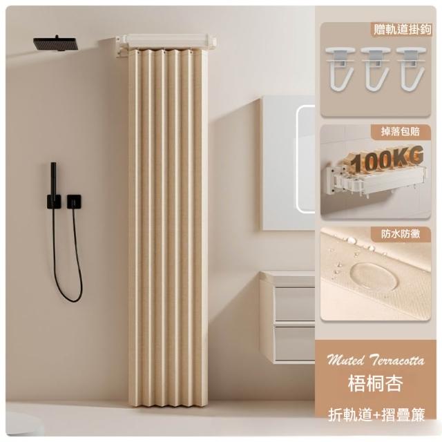 折疊浴簾 浴室隱形隔斷 家居衛生間防水簾 淋浴洗澡間幹濕分離 黏膠/打孔安裝