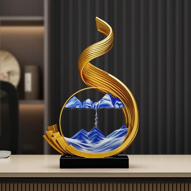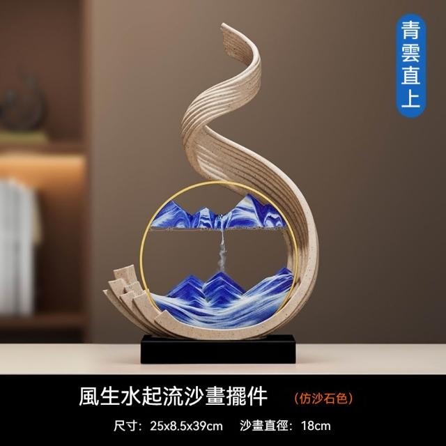 新中式風生水起流沙畫擺件 喬遷招財擺飾 25*8.5*39cm 輕奢百搭 底座穩固 3D立體沙漏畫裝飾品