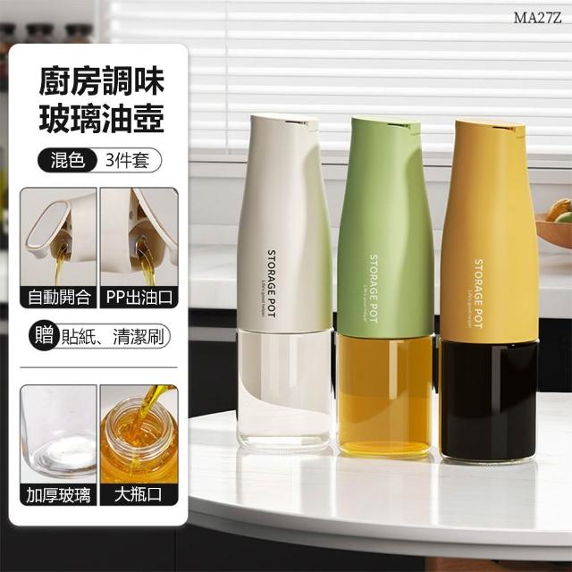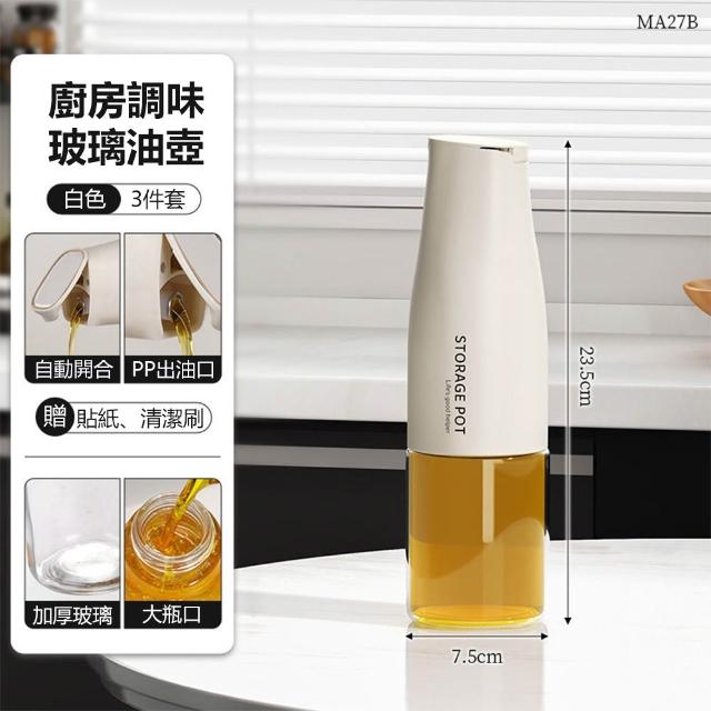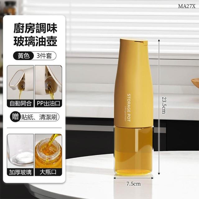 油壺調料玻璃瓶 7.5x23.5CM 自動開合/控油/防漏油 加厚大瓶口油壺 調料瓶