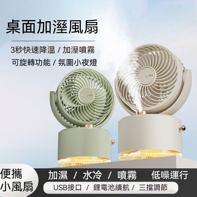 桌面小風扇 加濕水冷噴霧風扇 可搖頭 三擋調節 DC5V/2A 直插版/充電版可選