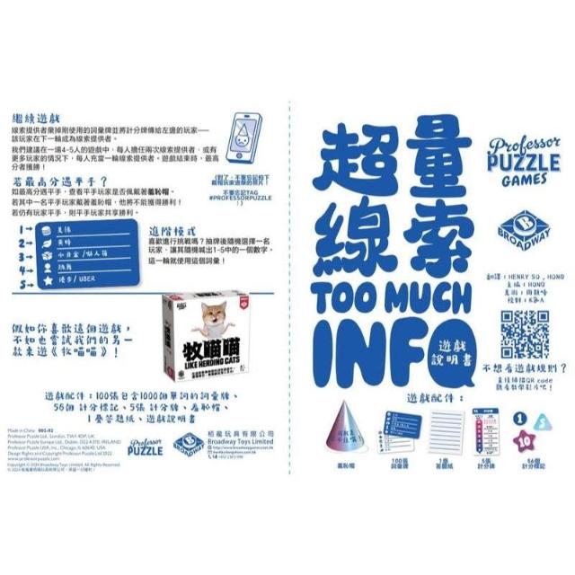 超量線索 too much info 繁體中文版 高雄龐奇桌遊