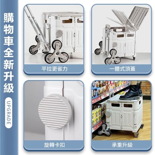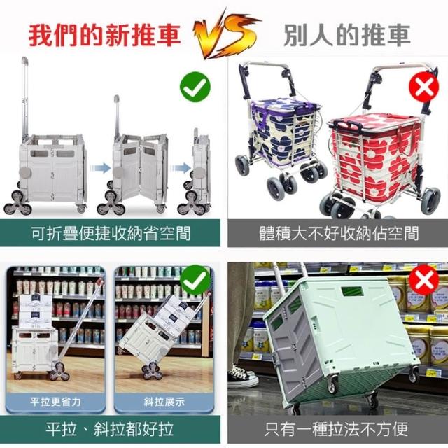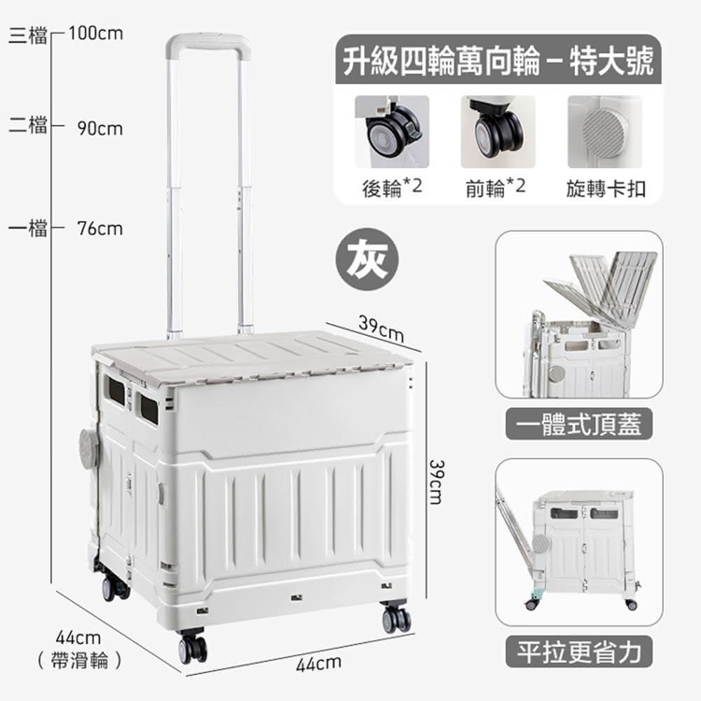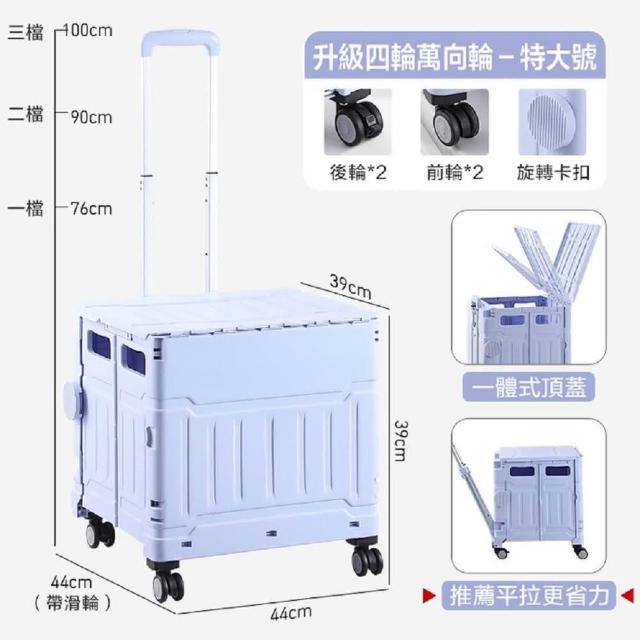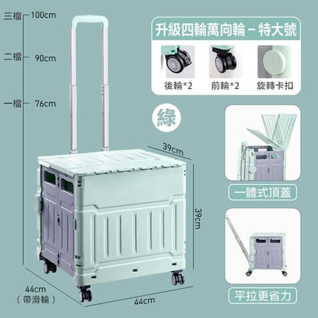 折疊手推車 平拉四輪萬向折疊購物車75L(摺疊手推車 買菜車 菜籃車 收納箱 手拉車 置物車)