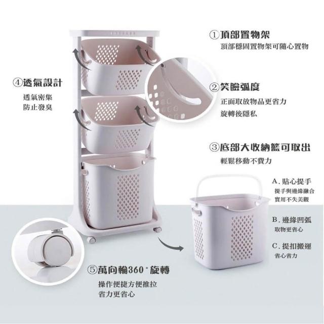 DaoDi三層髒衣籃滑輪推車 兩款可選洗衣籃/洗衣籃推車/分類收納籃