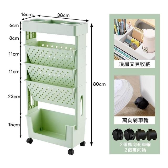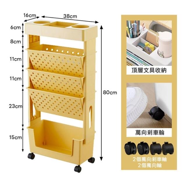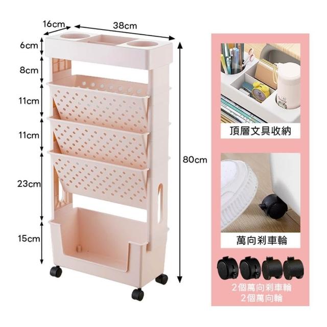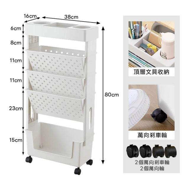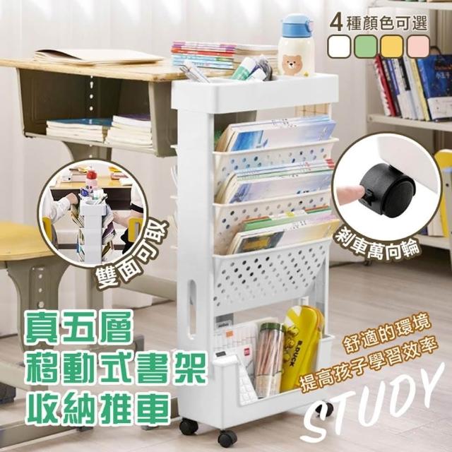 DaoDi2入組五層移動式書架收納推車附萬向煞車輪(書架 推車 文具收納 置物架 書本收納)