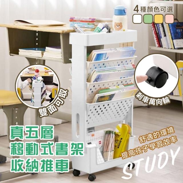 DaoDi五層移動式書架收納推車附萬向煞車輪(書架 推車 文具收納 置物架 書本收納)