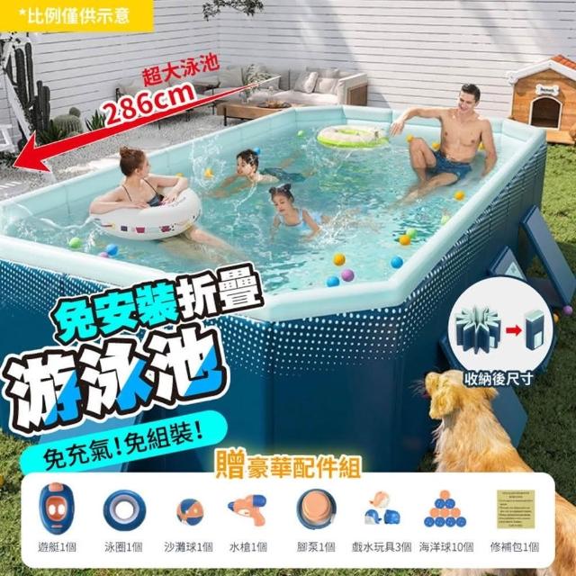DaoDi泳池 免充氣折疊游泳池3米(附豪華戲水組 兒童戲水池 摺疊泳池 家庭水池 儲水桶)