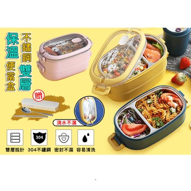 DaoDi不鏽鋼雙層保溫便當盒2入組附餐具組(雙層便當盒/保鮮盒 餐盒 飯盒)