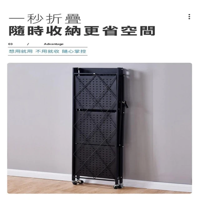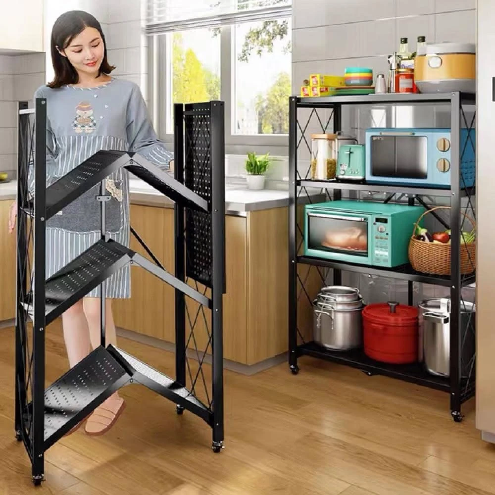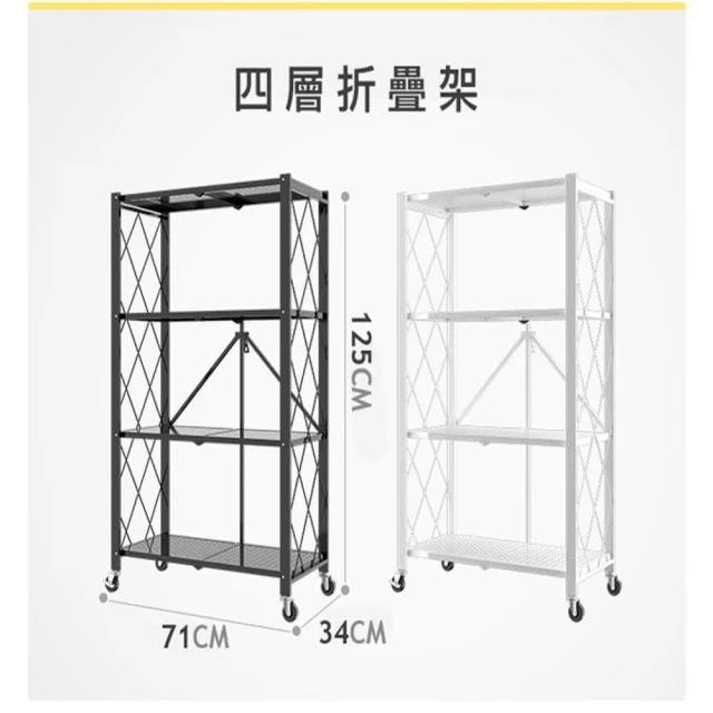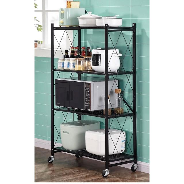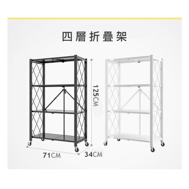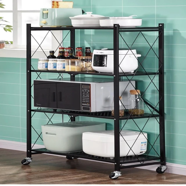 DaoDi免安裝折疊置物架 四層摺疊收納架(附滑輪 廚房收納 微波爐置物架)