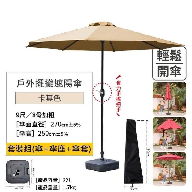 DaoDi戶外遮陽傘 庭院太陽傘9尺含傘座套裝組 免運(海灘傘 沙灘傘 擺攤傘 露營傘)