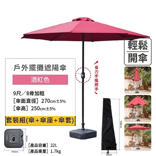 DaoDi戶外遮陽傘 庭院太陽傘9尺含傘座套裝組 免運(海灘傘 沙灘傘 擺攤傘 露營傘)