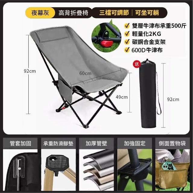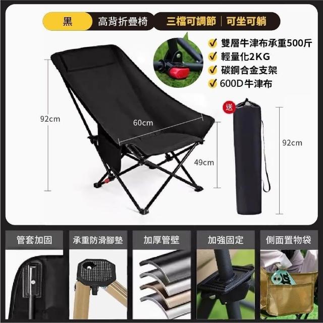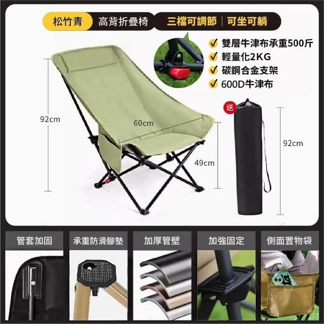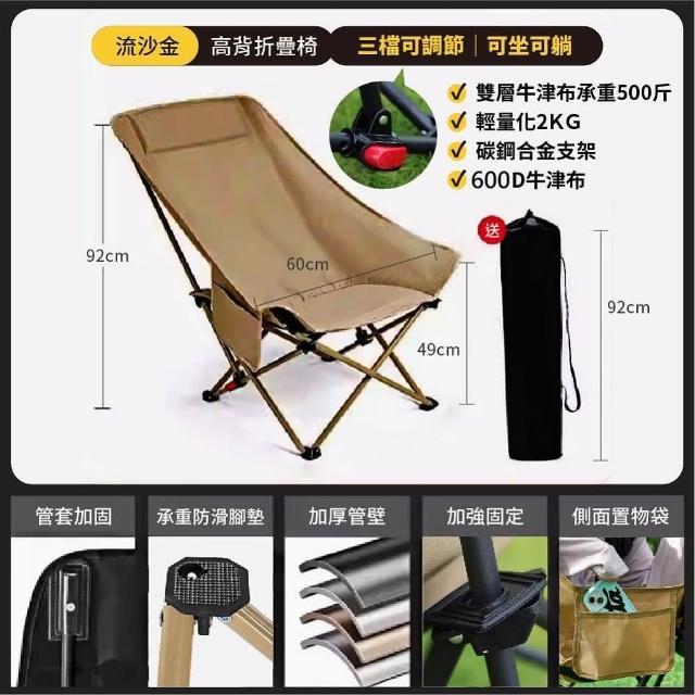 DaoDi高背月亮椅 三檔調節 免安裝 露營椅 戶外折疊椅(附收納袋 躺椅 導演椅 休閒椅 釣魚椅)