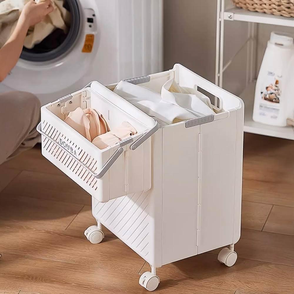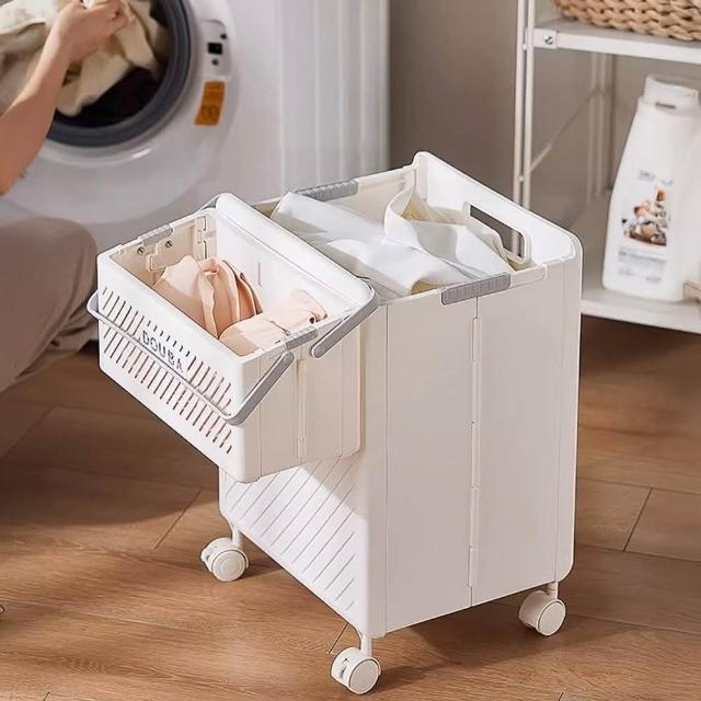 DaoDi折疊洗衣籃 附輪髒衣籃 推車收納 (買大送小髒衣籃 分類髒衣籃 縫隙置物推車)