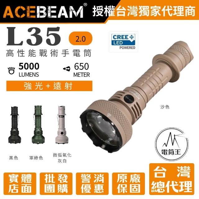 ACEBEAM電筒王 L35 2.0 5000流明 650米 高亮戰術手電筒 側按/尾按 雙開關 攻擊頭 21700