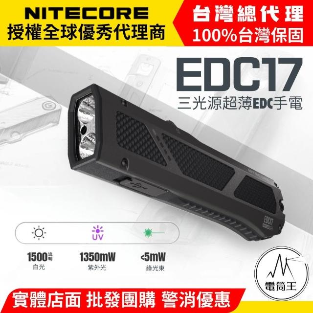 NITECORE電筒王 EDC17 1500流明 230米 三光源超薄EDC手電 白光/紫光/綠光 TYPE-C