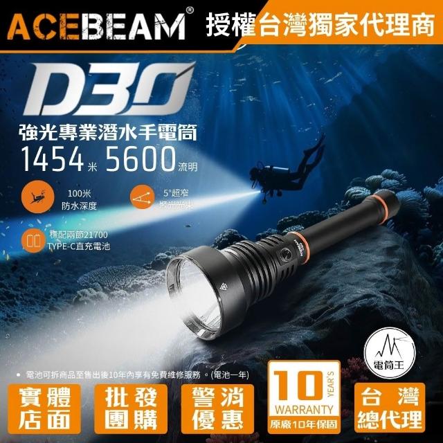 ACEBEAM電筒王 D30 專業潛水手電筒 5600流明 1454米 聚焦 穿透性 長續航 深海探索 防水耐腐蝕
