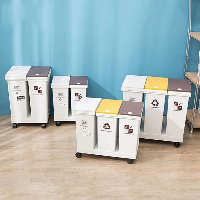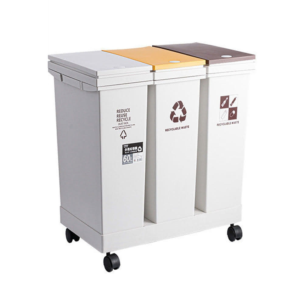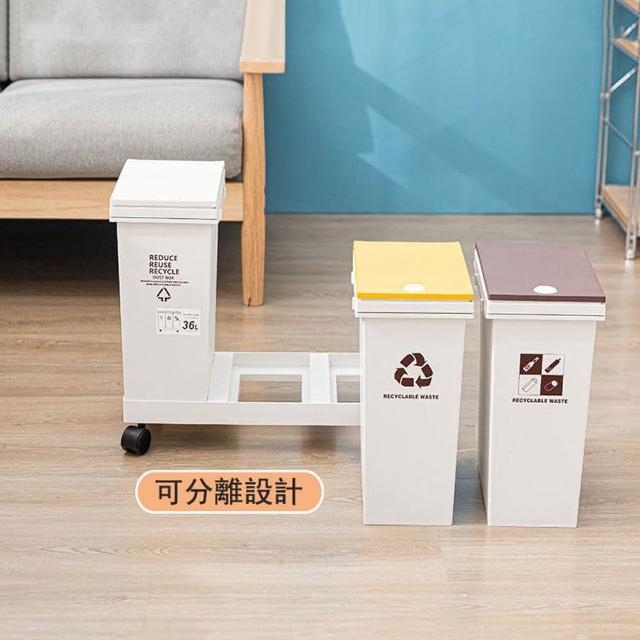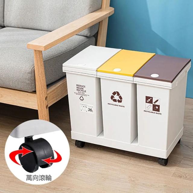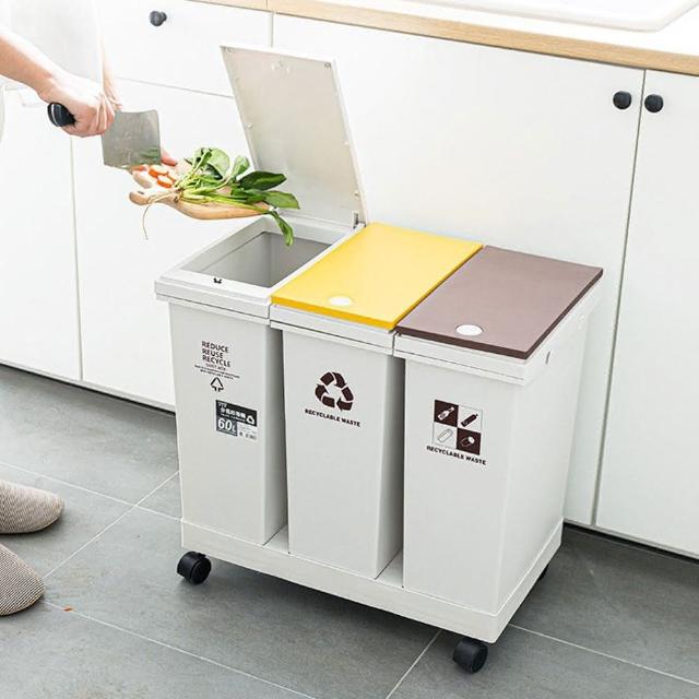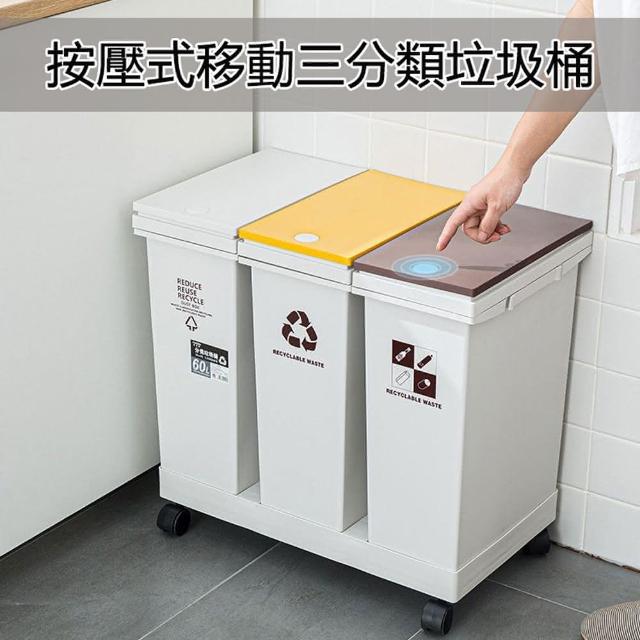 可移動按壓式帶蓋三桶分類垃圾桶A(垃圾桶 廚餘桶 回收桶 垃圾分類桶 帶蓋垃圾桶 按壓式垃圾桶)