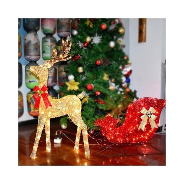 聖誕節裝飾擺件 發光鹿 麋鹿拉車C(聖誕裝飾 發光鹿 麋鹿 節日裝飾 聖誕鹿 鹿拉車)