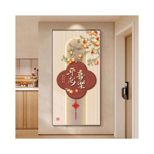 JU JIA JIA 居家家中式入戶掛畫 平安喜樂寓意喜慶玄關畫 走廊客廳過道裝飾畫 豎版壁畫B