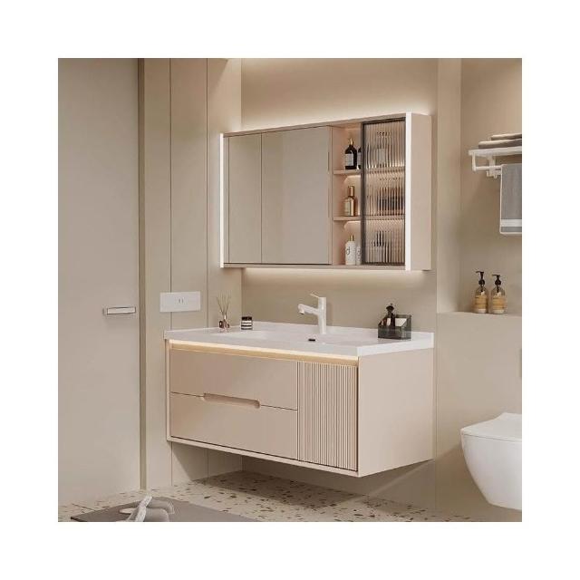 JU JIA JIA 居家家奶油法式輕奢浴室櫃組合 陶瓷一體洗手盆 洗臉盆 智能洗漱洗手衛生間鏡櫃B