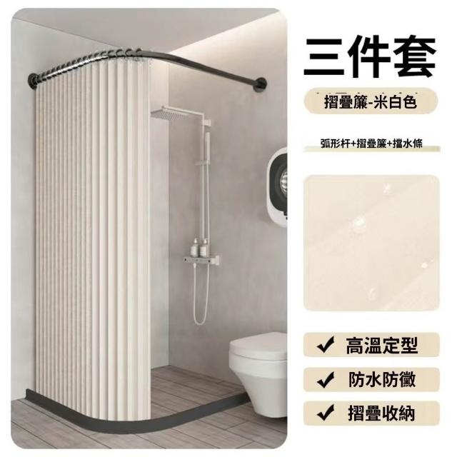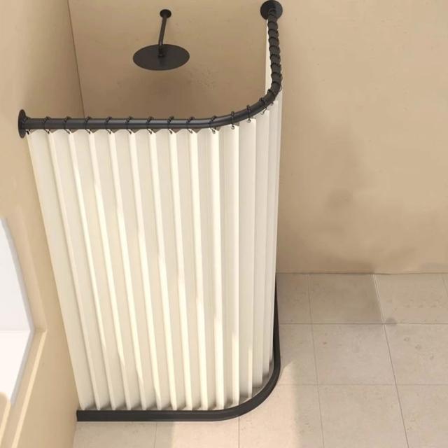 JU JIA JIA 居家家衛生間浴室弧形浴簾杆套裝 加厚摺疊淋浴防水布 乾濕分離隔斷浴簾C