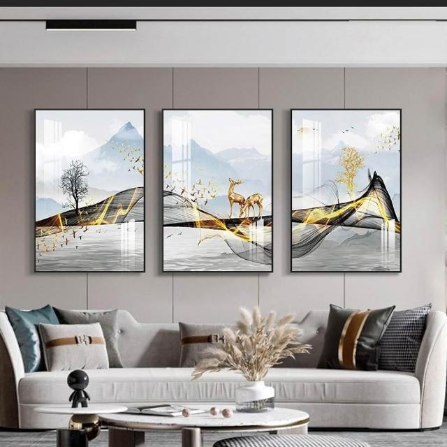 現代簡約三聯裝飾畫 背景墻掛畫 鋁合金框架壁畫 鋼化晶瓷面高清墻壁裝飾畫