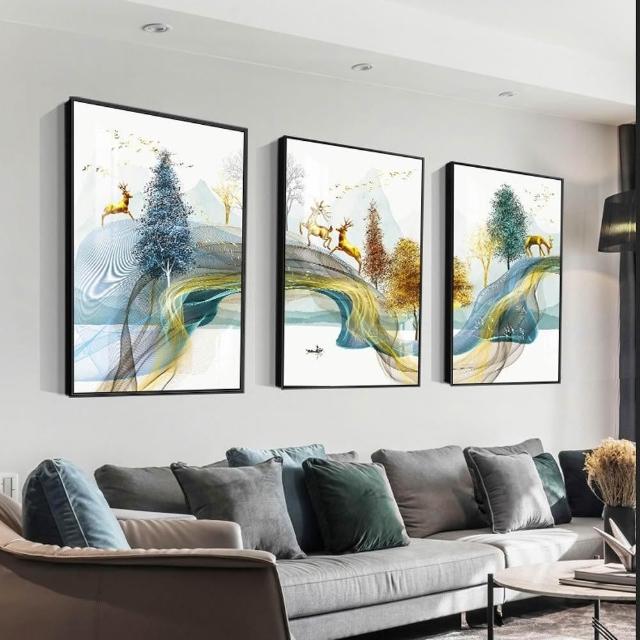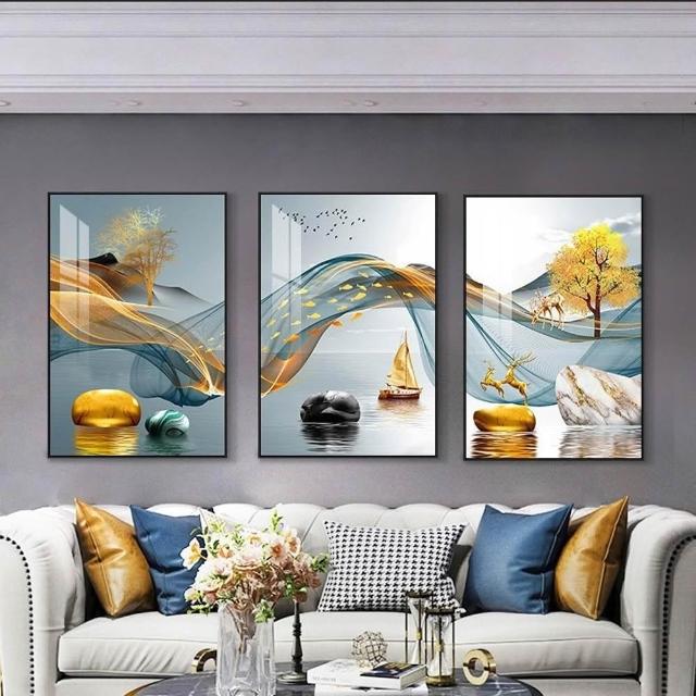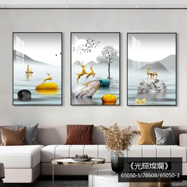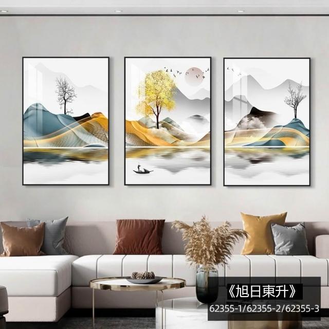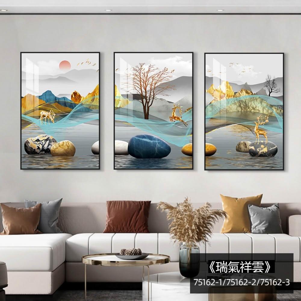 現代簡約三聯裝飾畫 背景墻掛畫 鋁合金框架壁畫 鋼化晶瓷面高清墻壁裝飾畫