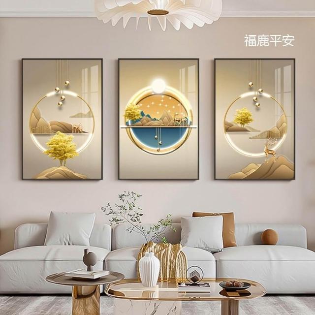 現代簡約三聯裝飾畫 背景墻掛畫 鋁合金框架壁畫 鋼化晶瓷面高清墻壁裝飾畫