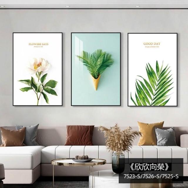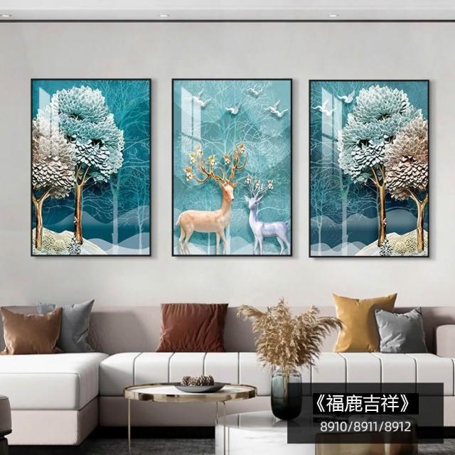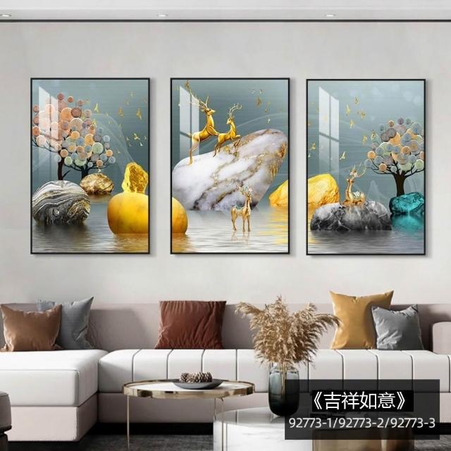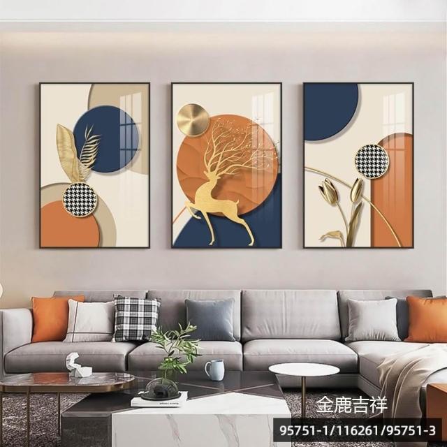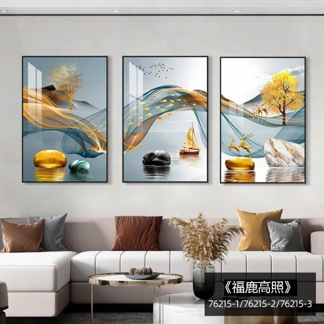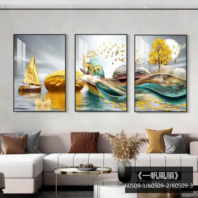 現代簡約三聯裝飾畫 背景墻掛畫 鋁合金框架壁畫 鋼化晶瓷面高清墻壁裝飾畫