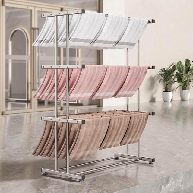 JU JIA JIA 居家家理髮店不鏽鋼毛巾架 落地式多層毛巾杆 毛巾晾曬架 衣架收納架 曬被架C