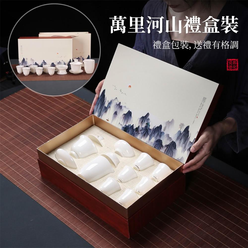 JU JIA JIA 居家家會客家用德化白瓷茶具套裝 蓋碗 茶壺 茶杯 功夫茶具 陶瓷茶具C