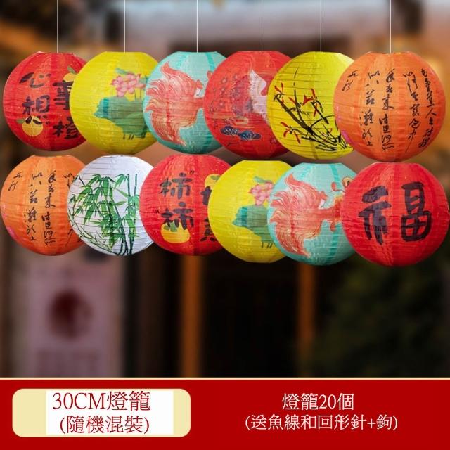 古風裝飾燈籠套裝 新年氛圍佈置 戶外防水國潮油紙傘 掛飾 發光燈籠