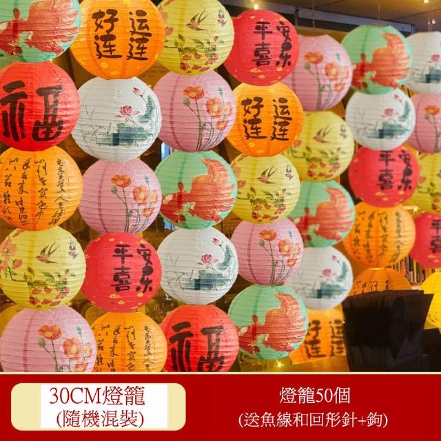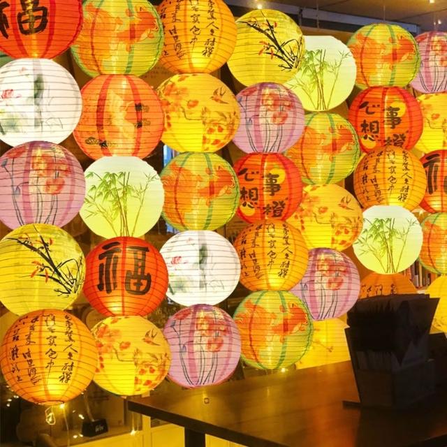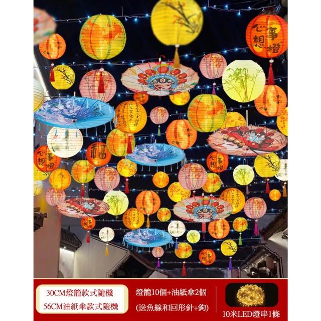 古風裝飾燈籠套裝 新年氛圍佈置 戶外防水國潮油紙傘 掛飾 發光燈籠