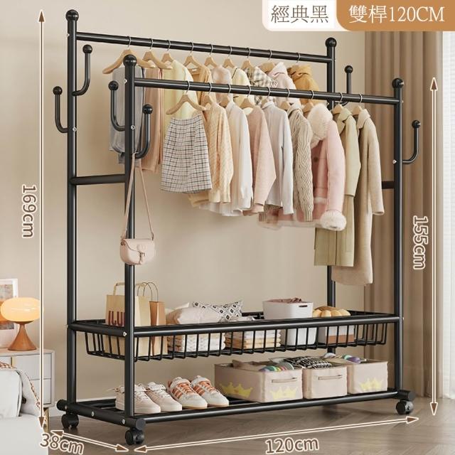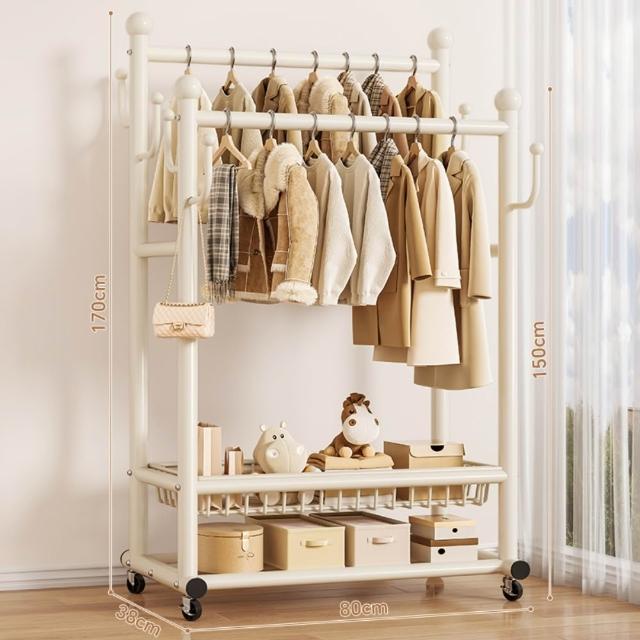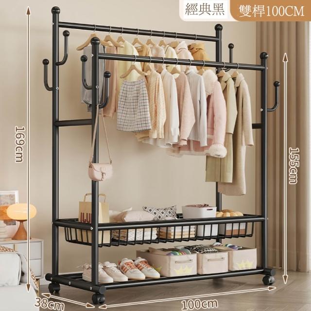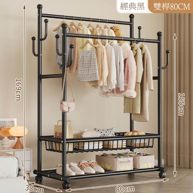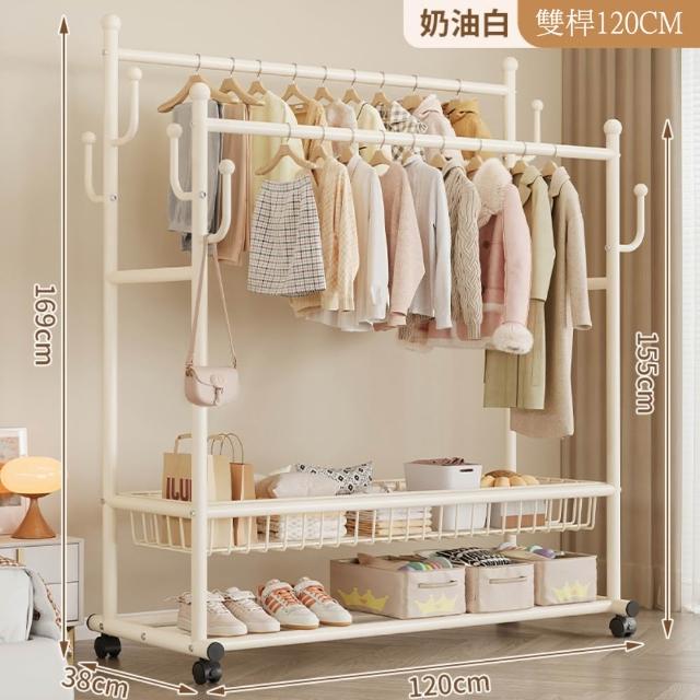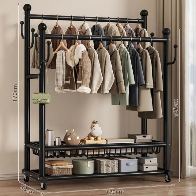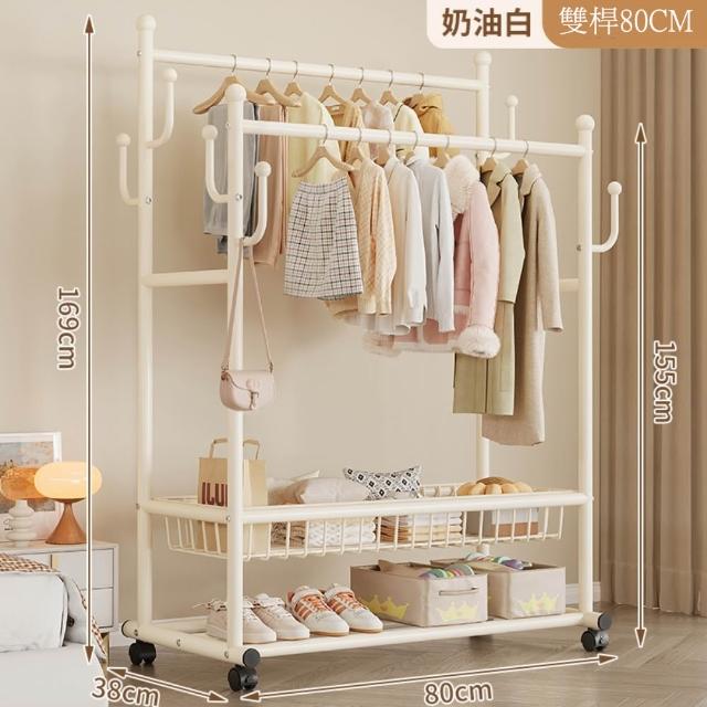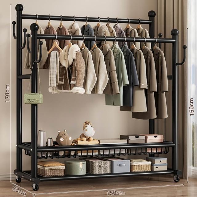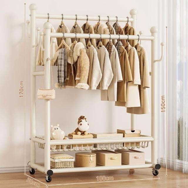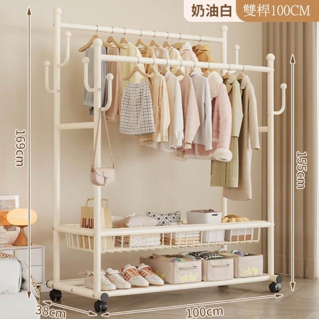 JU JIA JIA 居家家臥室雙桿掛衣架 室內雙桿晾曬架 可移動衣服掛架 衣物置物架 衣帽架