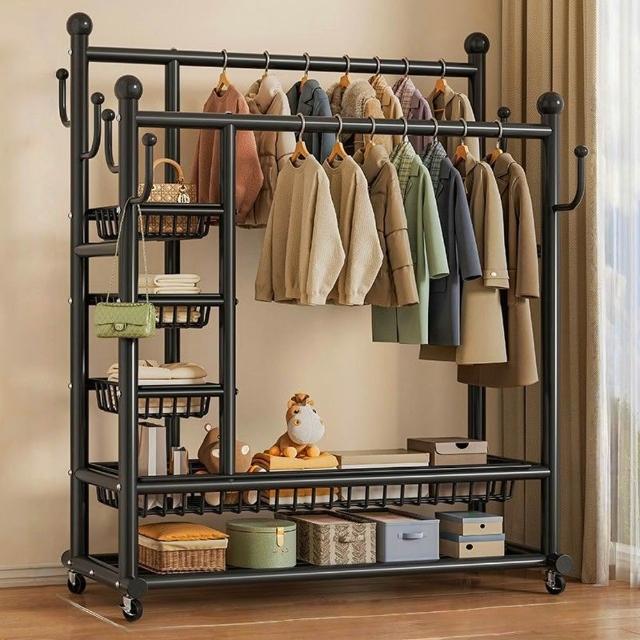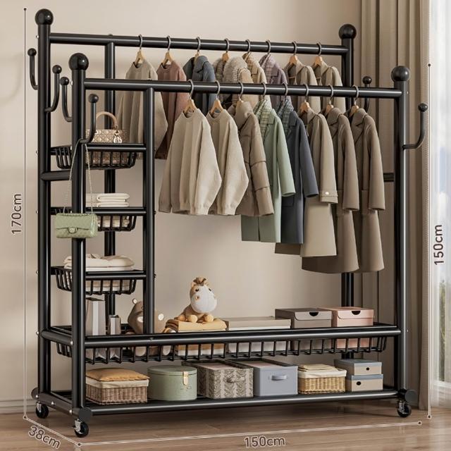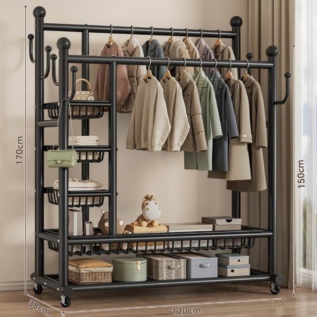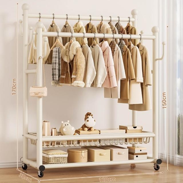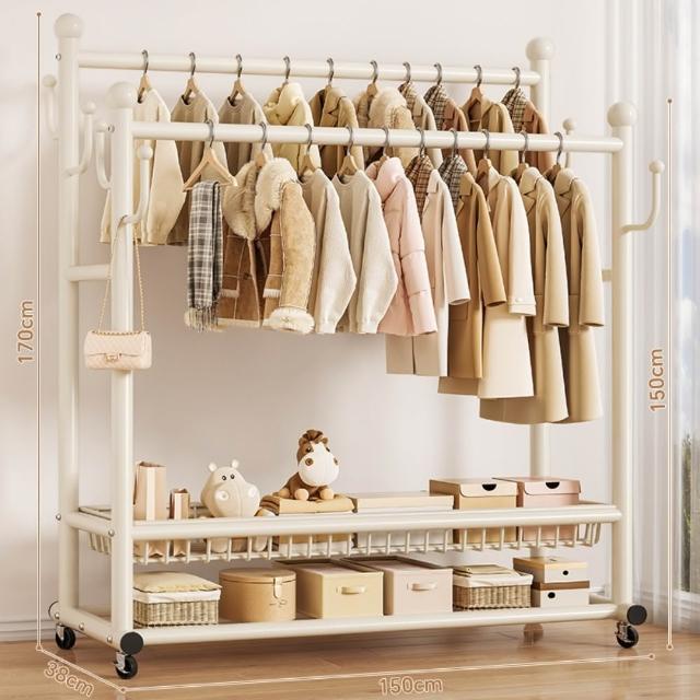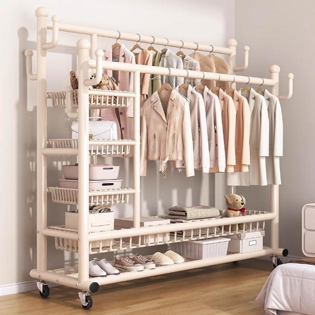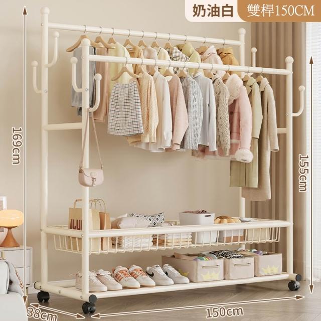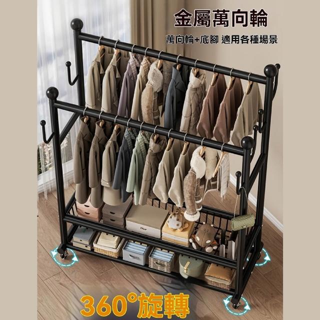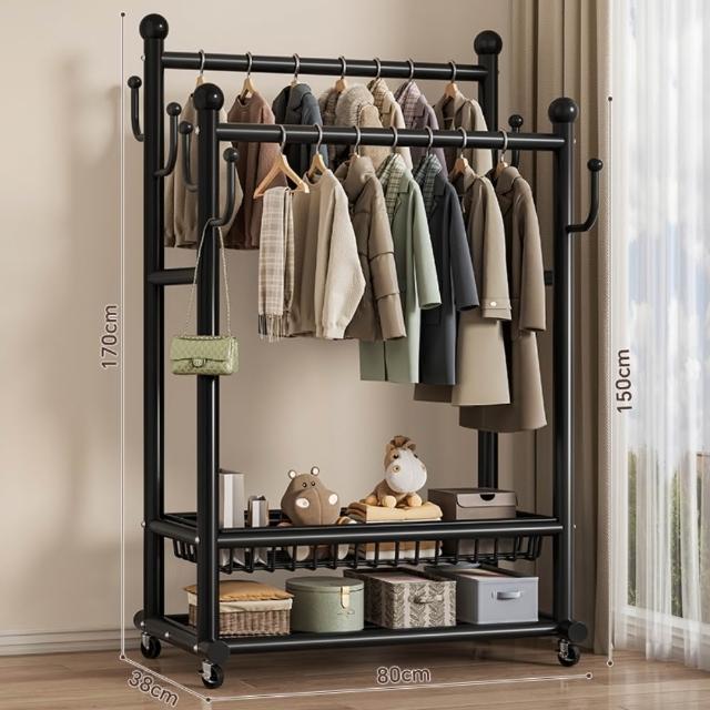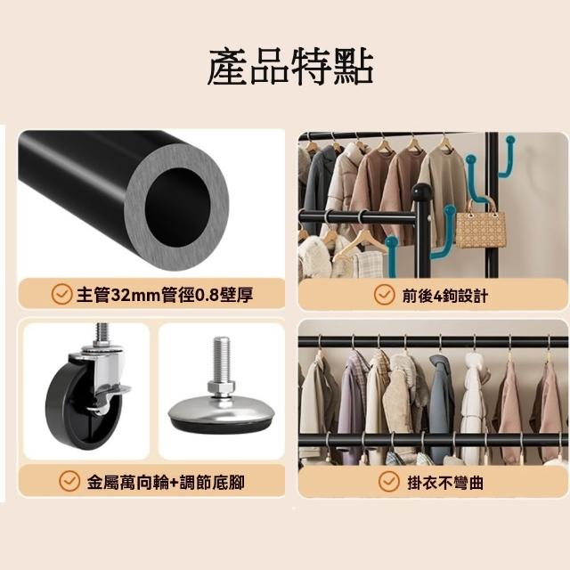 JU JIA JIA 居家家臥室雙桿掛衣架 室內雙桿晾曬架 可移動衣服掛架 衣物置物架 衣帽架
