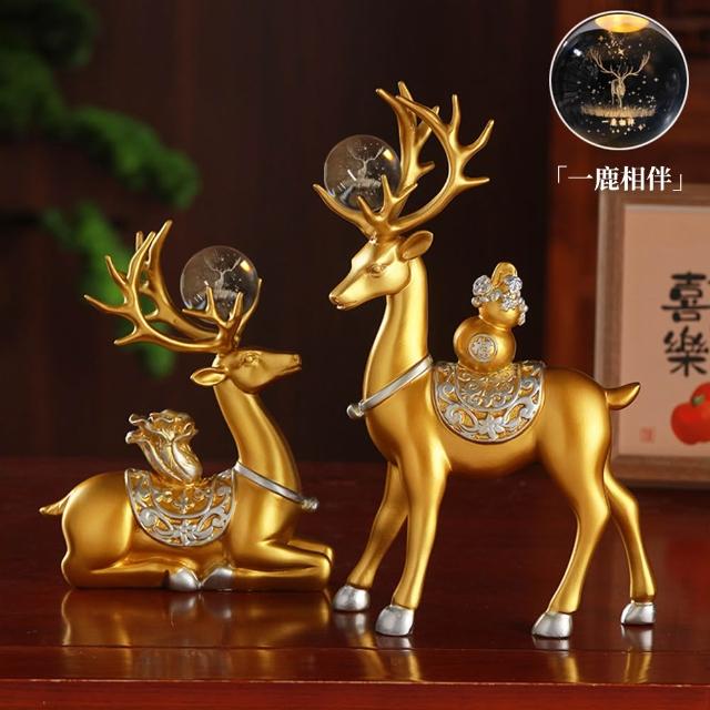 JU JIA JIA 居家家福鹿擺件 客廳電視櫃玄關招財裝飾品 麋鹿造型擺飾 喬遷禮物