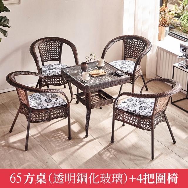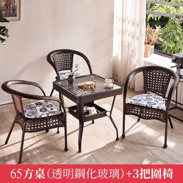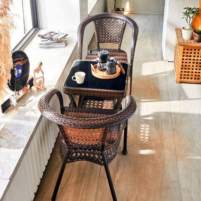 JU JIA JIA 居家家露天茶桌椅組合 陽台休閒桌椅 戶外靠背藤椅/小方桌 庭院桌椅