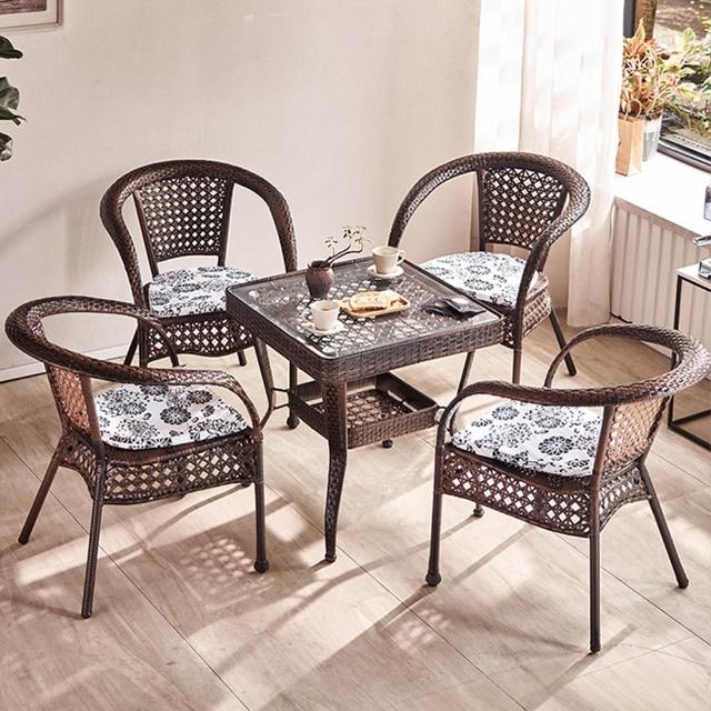 JU JIA JIA 居家家露天茶桌椅組合 陽台休閒桌椅 戶外靠背藤椅/小方桌 庭院桌椅