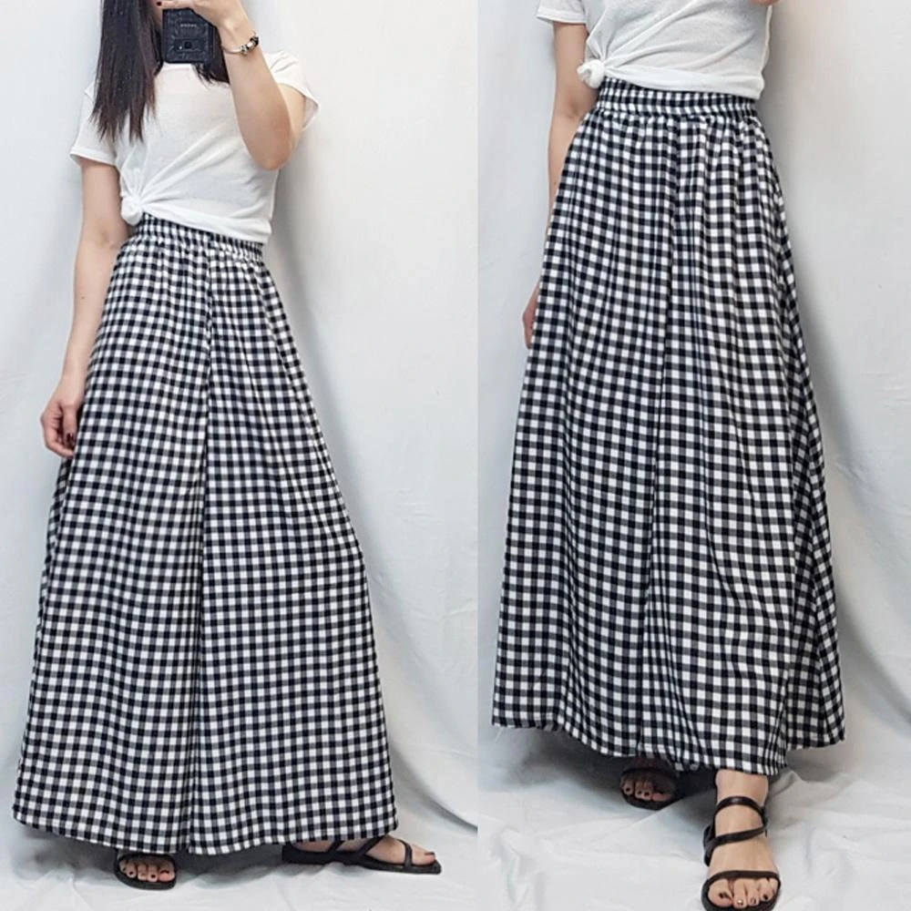 buyer 白鵝現貨 雪紡 垂墜感超顯瘦寬褲裙(黑白格子)