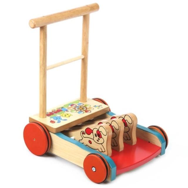 台灣製造 彩色原木防滑助步車(學步車 玩具車 助步車)